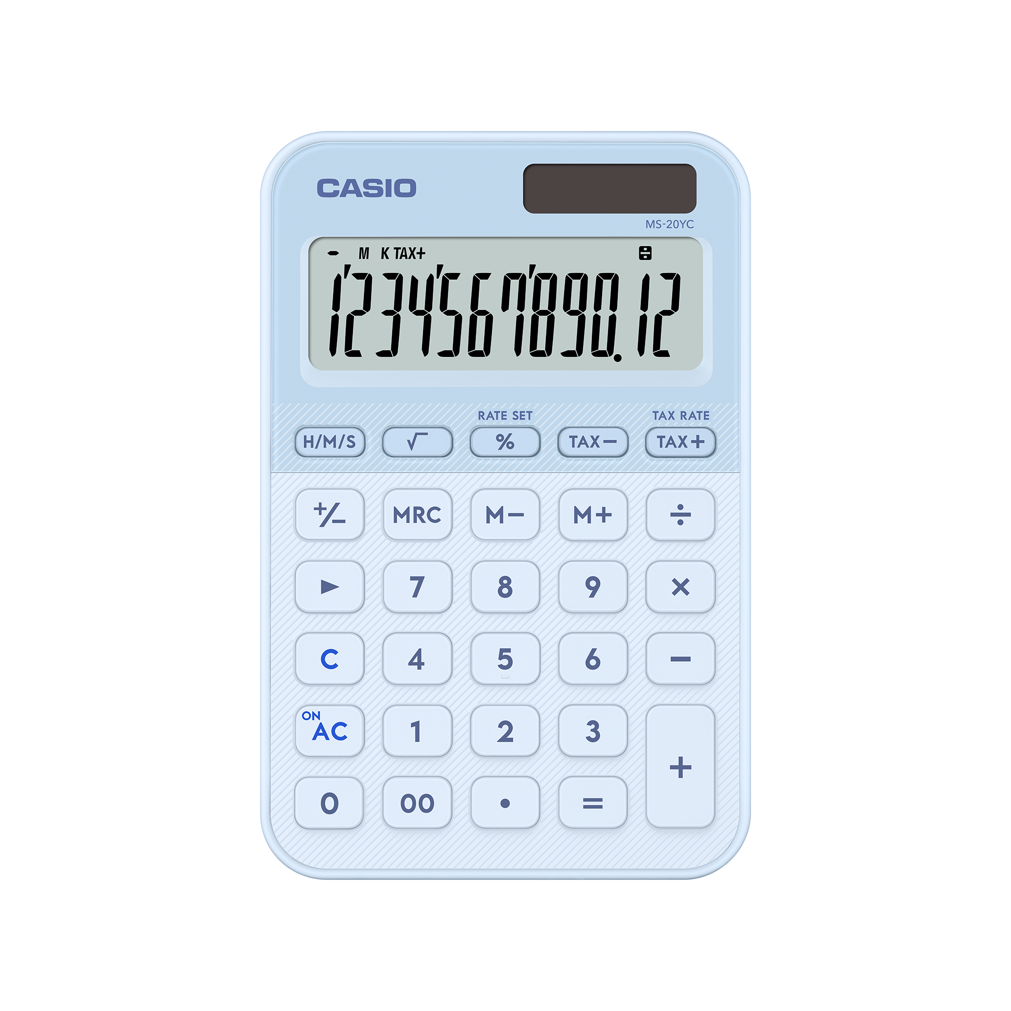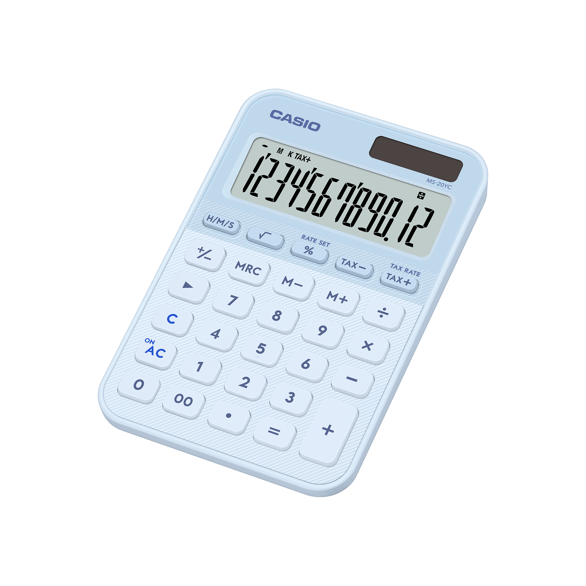 La CASIO MS-20YC-LB es una calculadora de escritorio de 12 dígitos, ideal para oficina, negocio y uso diario. Cuenta con pantalla grande inclinada para una mejor visualización, además de funciones prácticas como cálculo de tiempo, impuestos, raíz cuadrada y margen de ganancia.