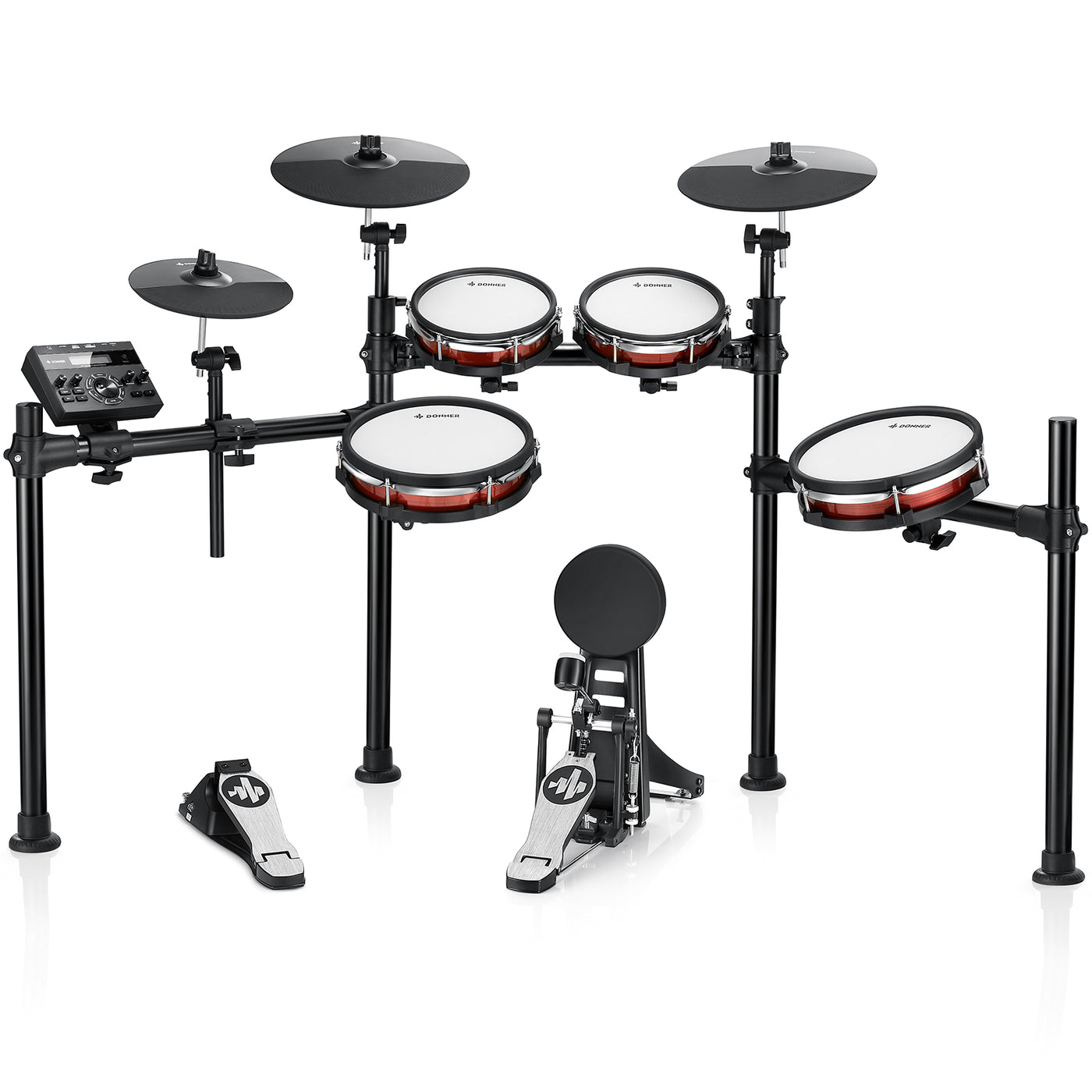 - Más grande y más preciso : El DED-200 MAX es una versión mejorada del DED-200 con 1 crash de 12'', 1 ride de 12'', 1 caja de 10'', 1 tom3 de 10'', 1 hi-hat de 10'', lo que proporciona puntos de detección de golpes más grandes y más precisos.