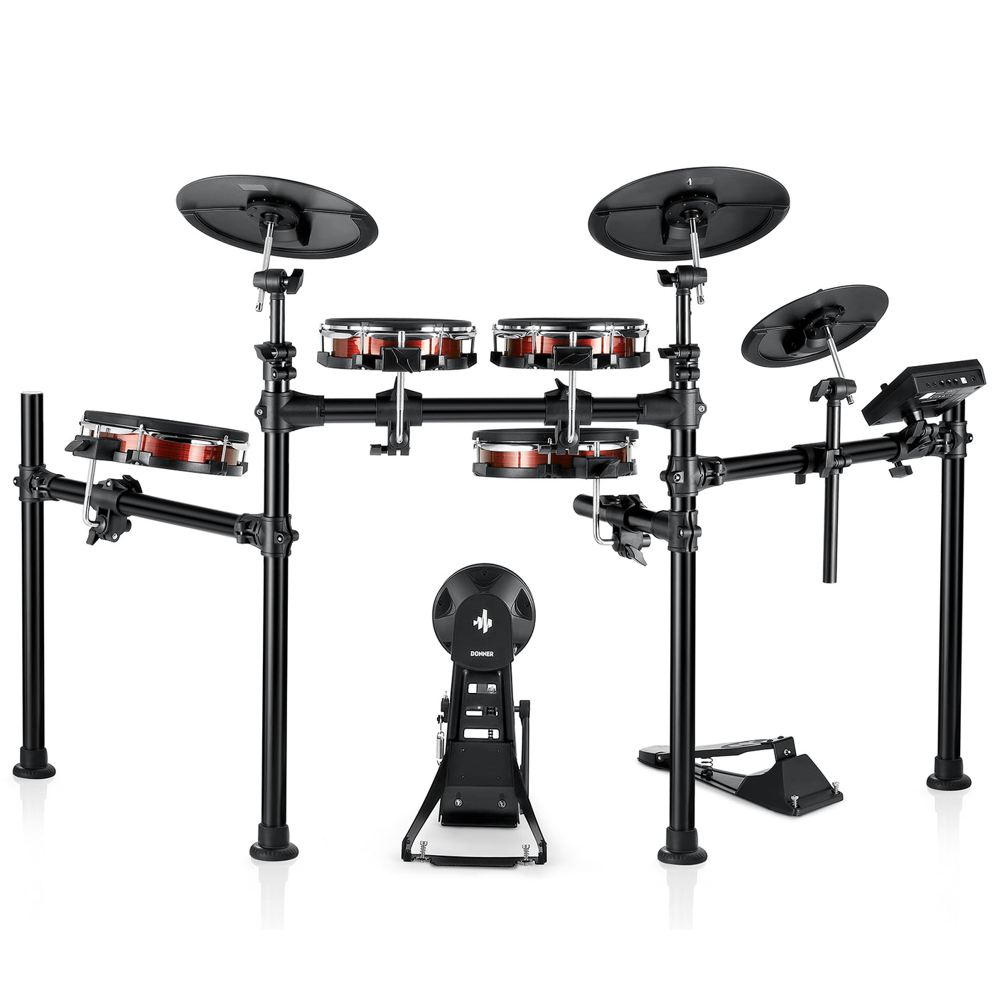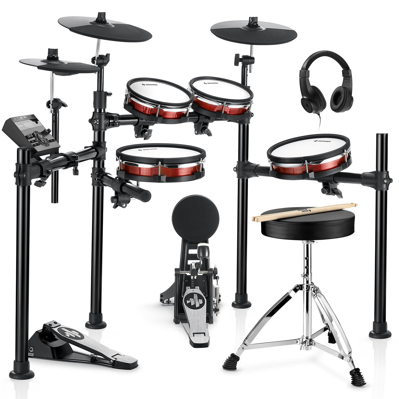- Paquete Todo en Uno para Principiantes : El DED-80 viene completamente equipado con todo lo necesario para empezar: pads de malla, platillos, trono de batería, baquetas, auriculares y cables. ¡Solo conéctalo y toca!