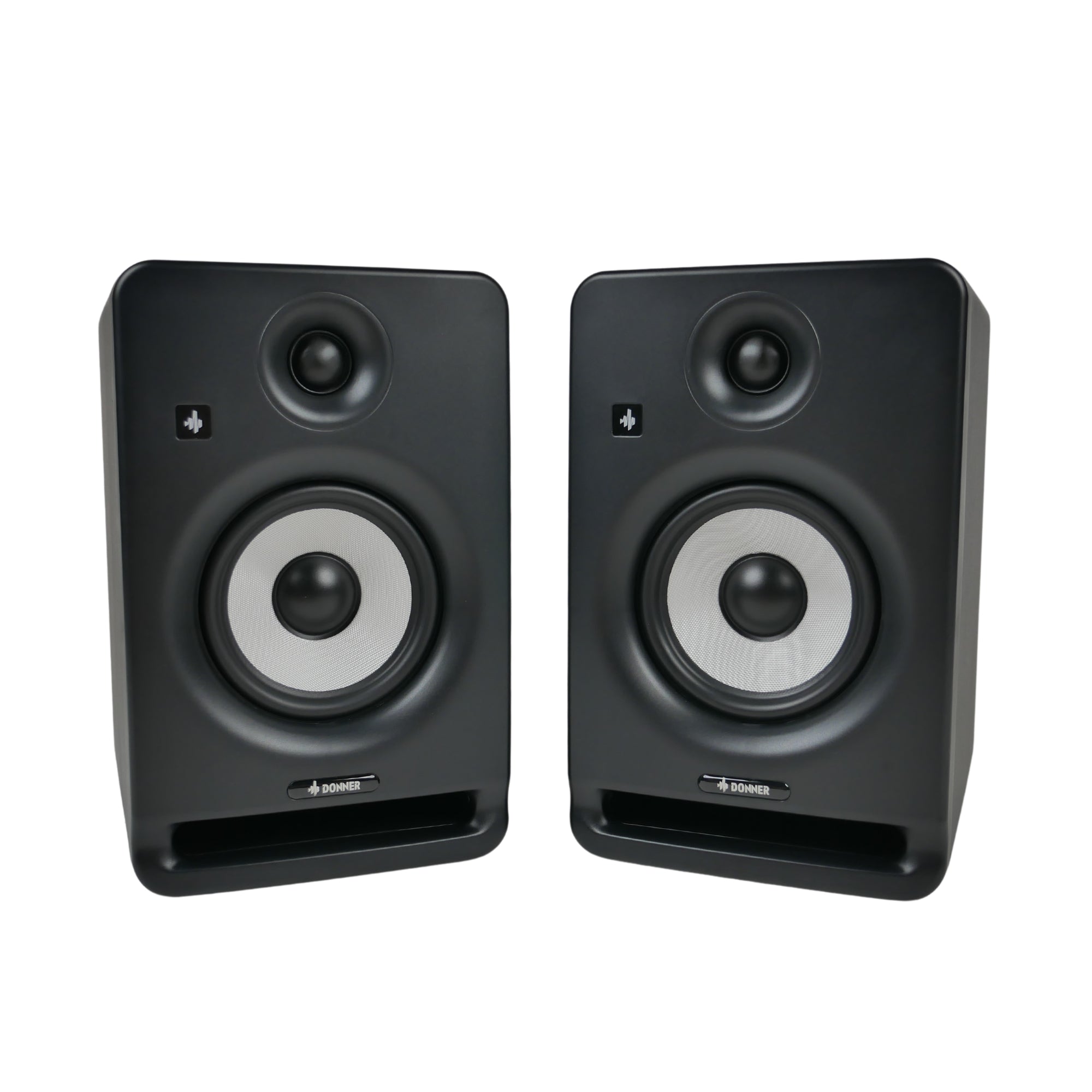 Presentamos los monitores de estudio Donner DMS 5.5, una solución de audio versátil y potente tanto para productores musicales como para audiófilos. Con un rango de respuesta en frecuencia de 55-20 kHz y una potencia máxima de 100 W, estos altavoces ofrecen una reproducción de sonido nítida y precisa en todo el espectro. Su diseño biamplificado incluye un controlador de graves de 30 W y un controlador de agudos de 15 W, lo que garantiza una salida balanceada. Con entradas balanceadas y no balanceadas, estos monitores se integran fácilmente en diversas configuraciones. Su diseño compacto de 30 cm x 19 cm x 22,5 cm y la posibilidad de ajustar el ecualizador los hacen ideales para cualquier estudio, ofreciendo un sonido de calidad profesional en un diseño elegante.