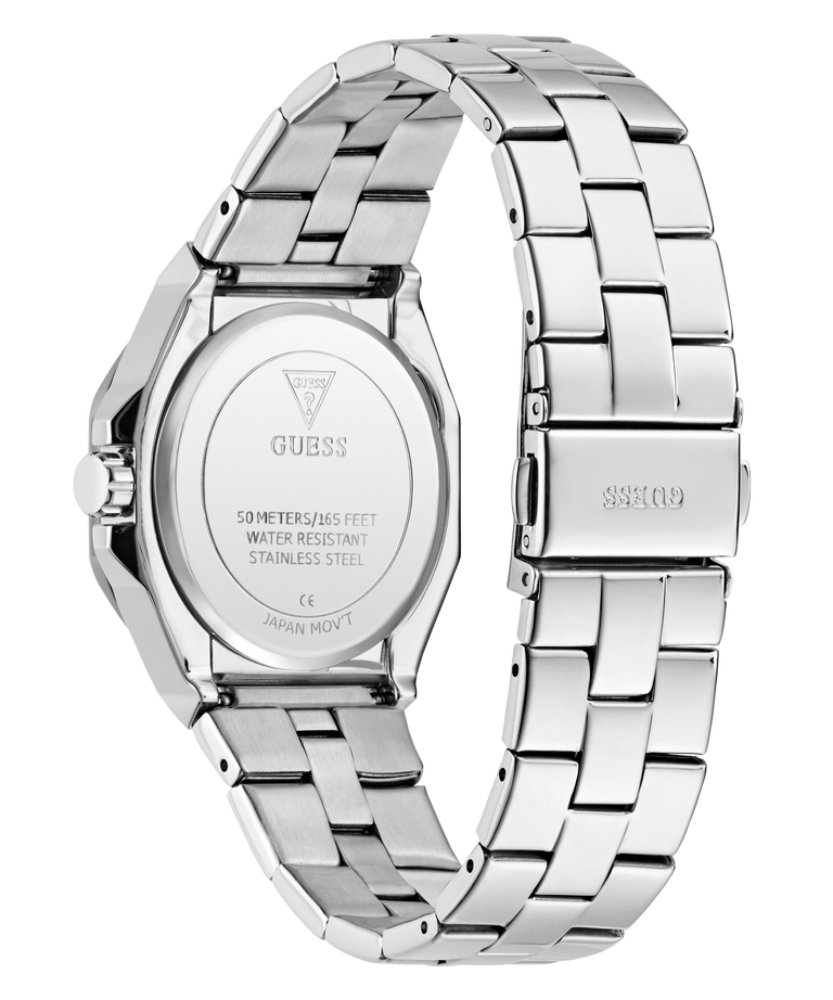 El GUESS GW0873L1 es un reloj femenino delicado con un diseño sobrio y elegante. Su caja de acero inoxidable en tono plateado de 34 mm está combinada con una esfera de color azul hielo (“ice blue”) que aporta un toque fresco y luminoso. Los marcadores y las manecillas minimalistas resaltan la simplicidad refinada del reloj, mientras que su movimiento de cuarzo garantiza una medición del tiempo precisa. Equipa cristal mineral resistente y ofrece una resistencia al agua de 50 metros, lo que lo hace adecuado para uso diario con un acabado pulido y compacto.
