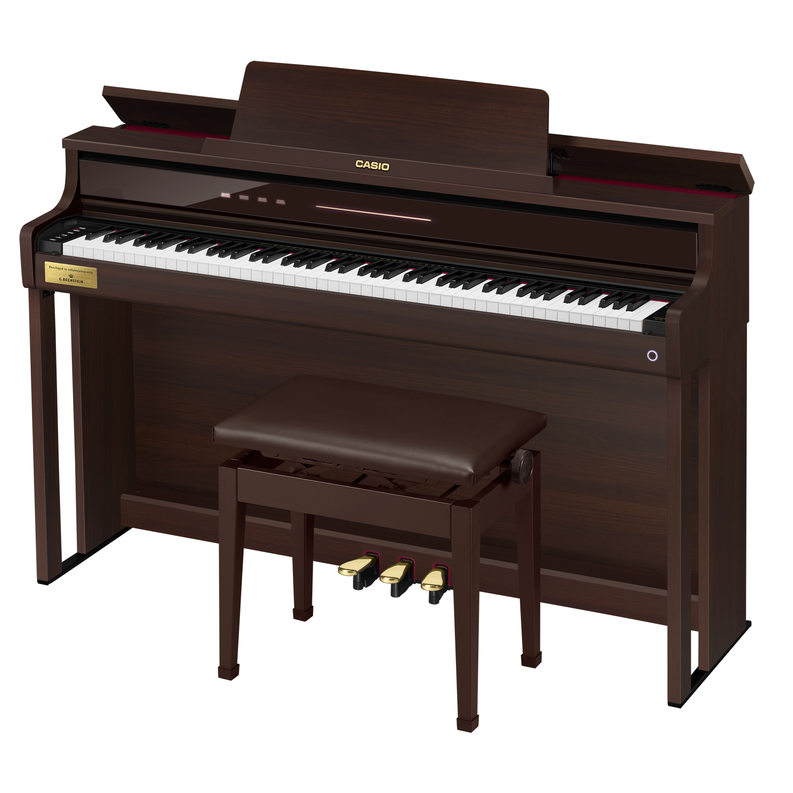 El Casio AP-750BNC2 eleva aún más la experiencia musical. Su acabado en cafe de alto lustre combina con componentes internos y tecnología de sonido que entregan un rendimiento expresivo superior, profundidad armónica y respuesta táctil profesional.