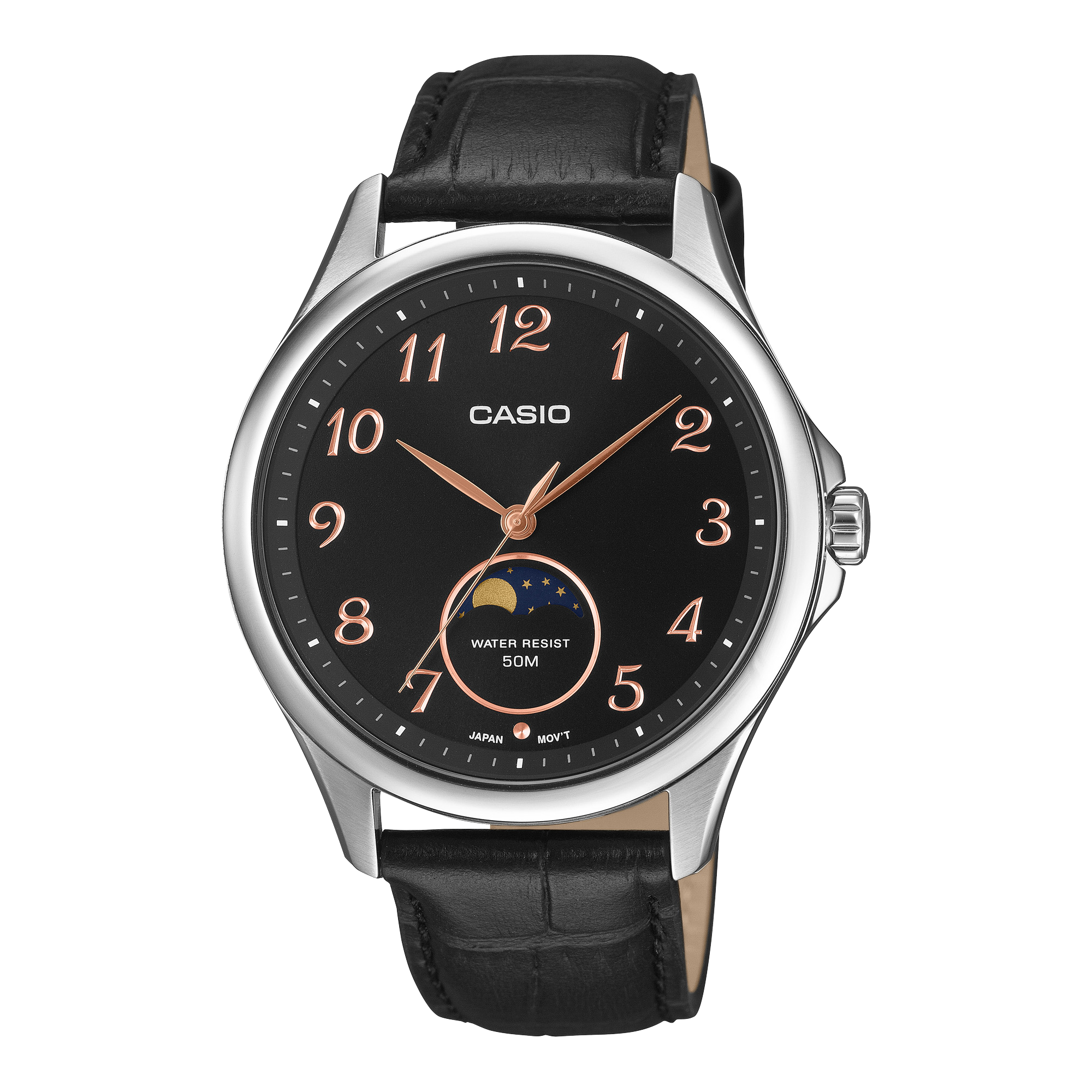 El MTP-M110L-1AV combina elegancia tradicional con diseño contemporáneo, convirtiéndose en un reloj ideal para acompañar cualquier estilo. Su correa de cuero genuino ofrece comodidad y durabilidad, mientras que la caja metálica pulida le da una apariencia refinada. Con resistencia al agua de 50 m y mecanismo de cuarzo preciso, es una elección confiable para quienes buscan un reloj sofisticado, duradero y con la calidad inconfundible de Casio.
