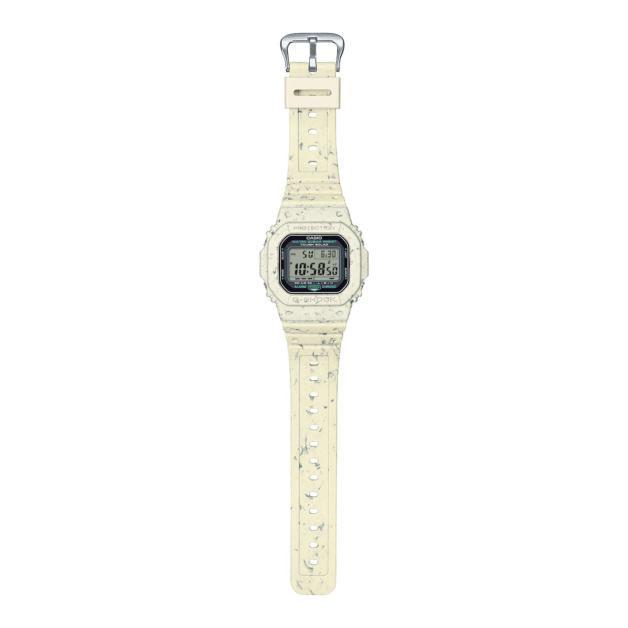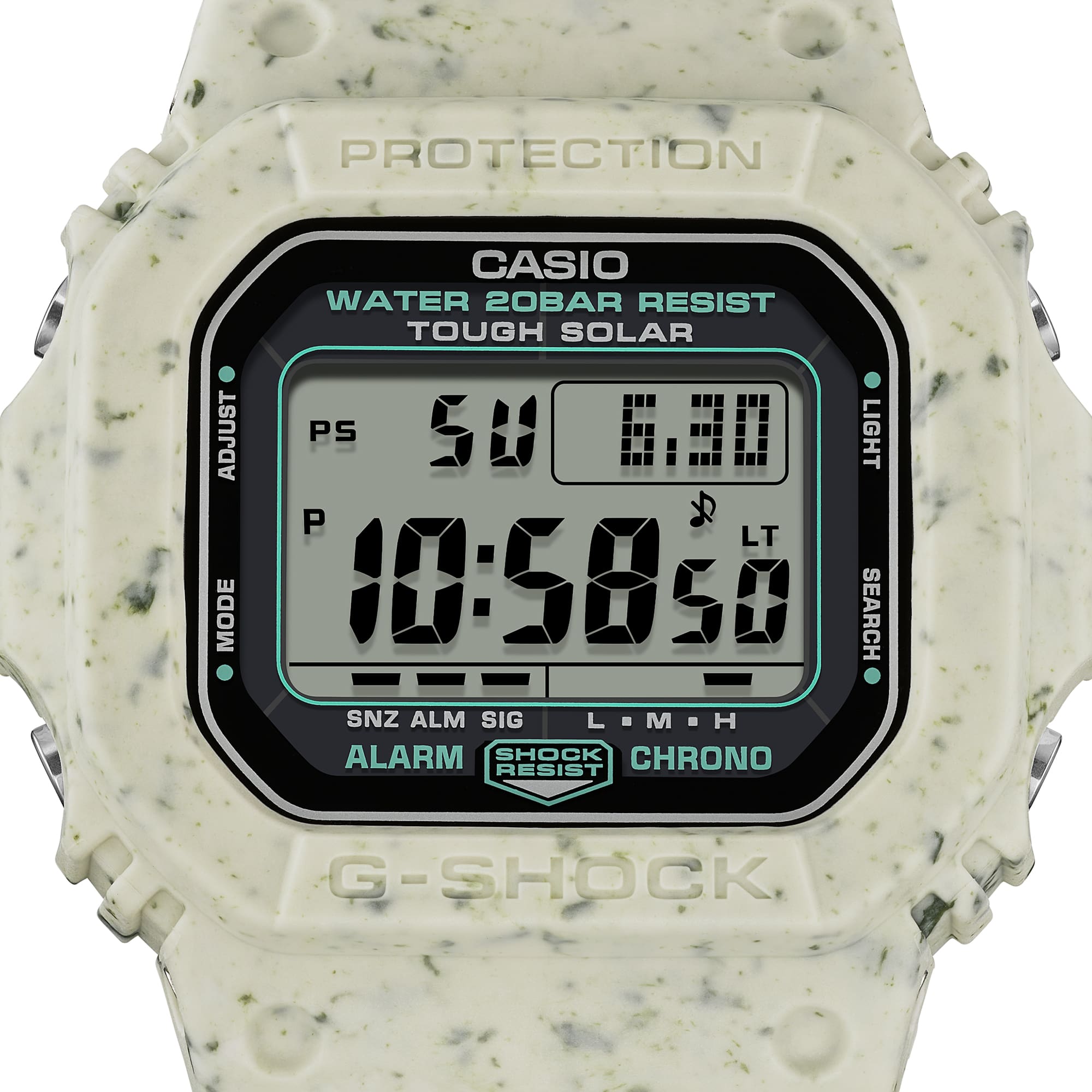 El G-5600BG-5 incluye cronómetro de precisión, temporizador de cuenta regresiva, alarmas diarias y señal horaria, además de formato horario configurable en 12 o 24 horas. Su iluminación con luz EL permite visualizar la pantalla en condiciones de poca luz, y su resistencia al agua de 200 metros lo hace apto para actividades acuáticas recreativas. Gracias a su sistema Tough Solar, el reloj se recarga mediante luz natural o artificial, asegurando autonomía prolongada. Su diseño marrón arena ofrece una estética versátil y distintiva que combina fácilmente con estilos casuales y outdoor.