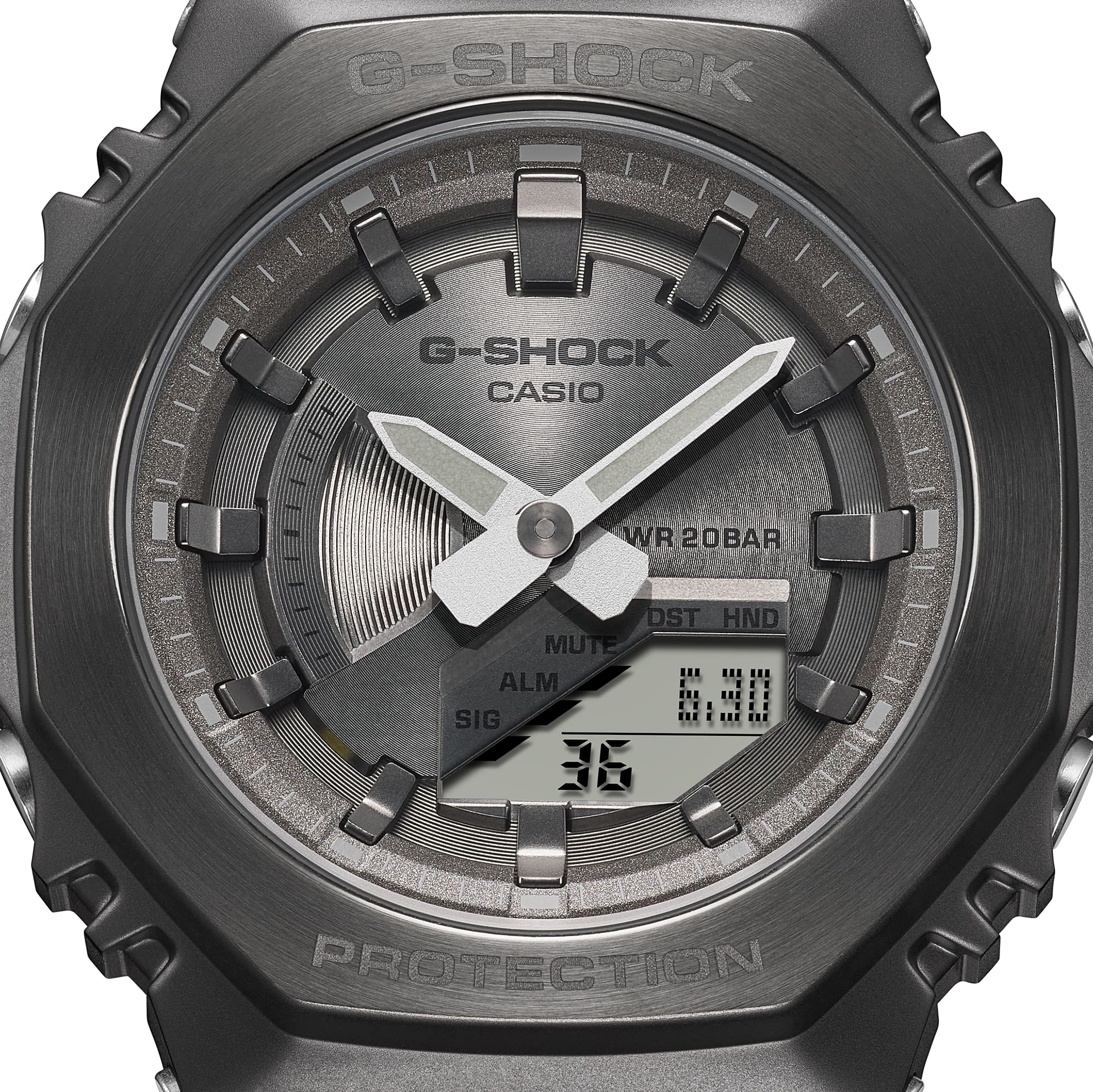 El GM‑S2100MF‑1A de la serie “Metal Covered” de G‑SHOCK combina el icónico bisel octogonal del modelo original con una estética refinada “Midnight Fog”, presentando un acabado metálico bruñido y correa de resina translúcida en tono neutro. Su diseño compacto se adapta a muñecas pequeñas y al uso unisex, manteniendo la resistencia a impactos y al agua hasta 200 metros, ofreciendo un equilibrio entre estilo urbano, funcionalidad moderna y durabilidad.