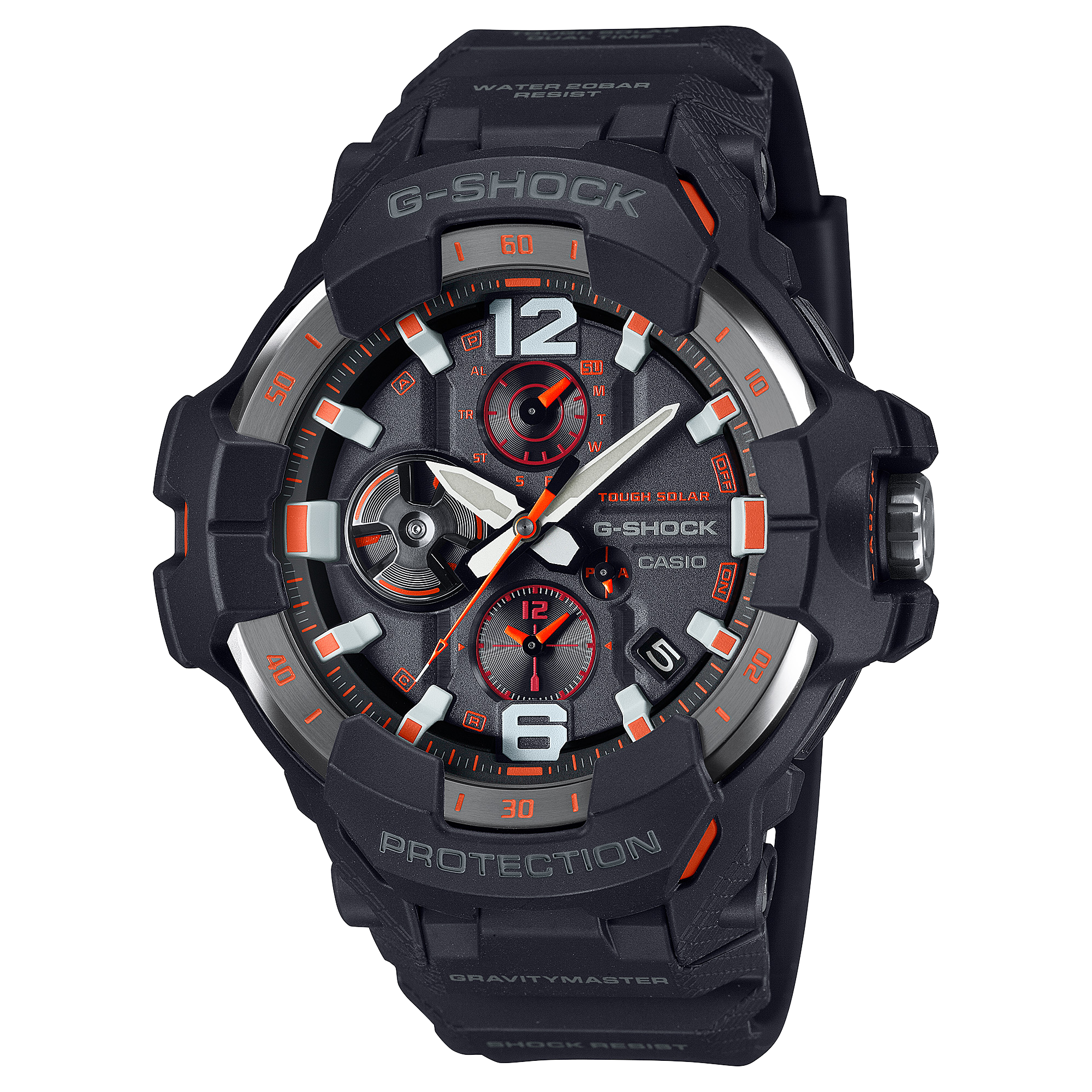 Un reloj profesional diseñado para la aviación y entornos extremos. El GR-B300-1A4 de la serie Gravitymaster incorpora materiales de alta resistencia y tecnología avanzada para soportar condiciones exigentes. Su diseño robusto y funcional está pensado para hombres que requieren precisión, durabilidad y confiabilidad absoluta.