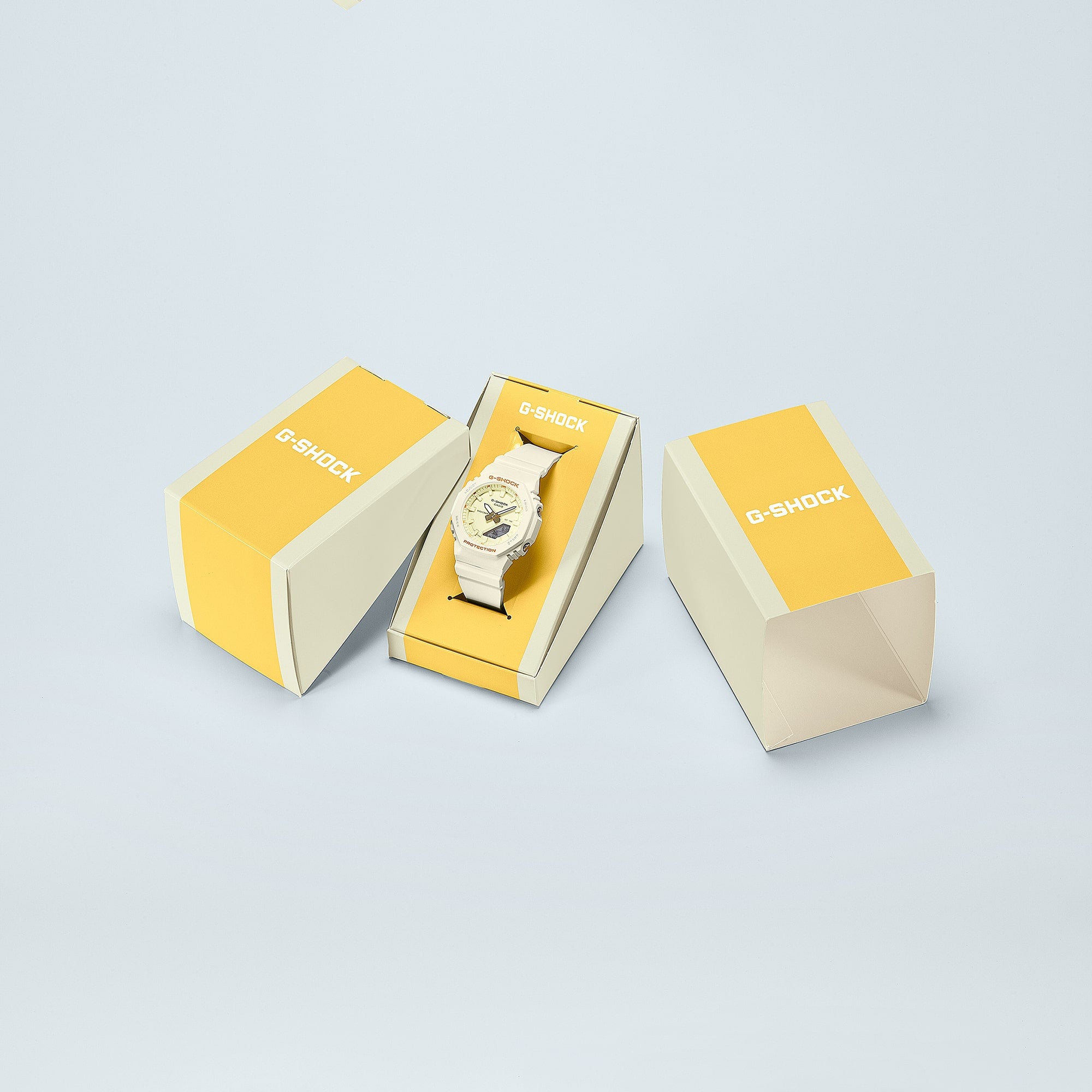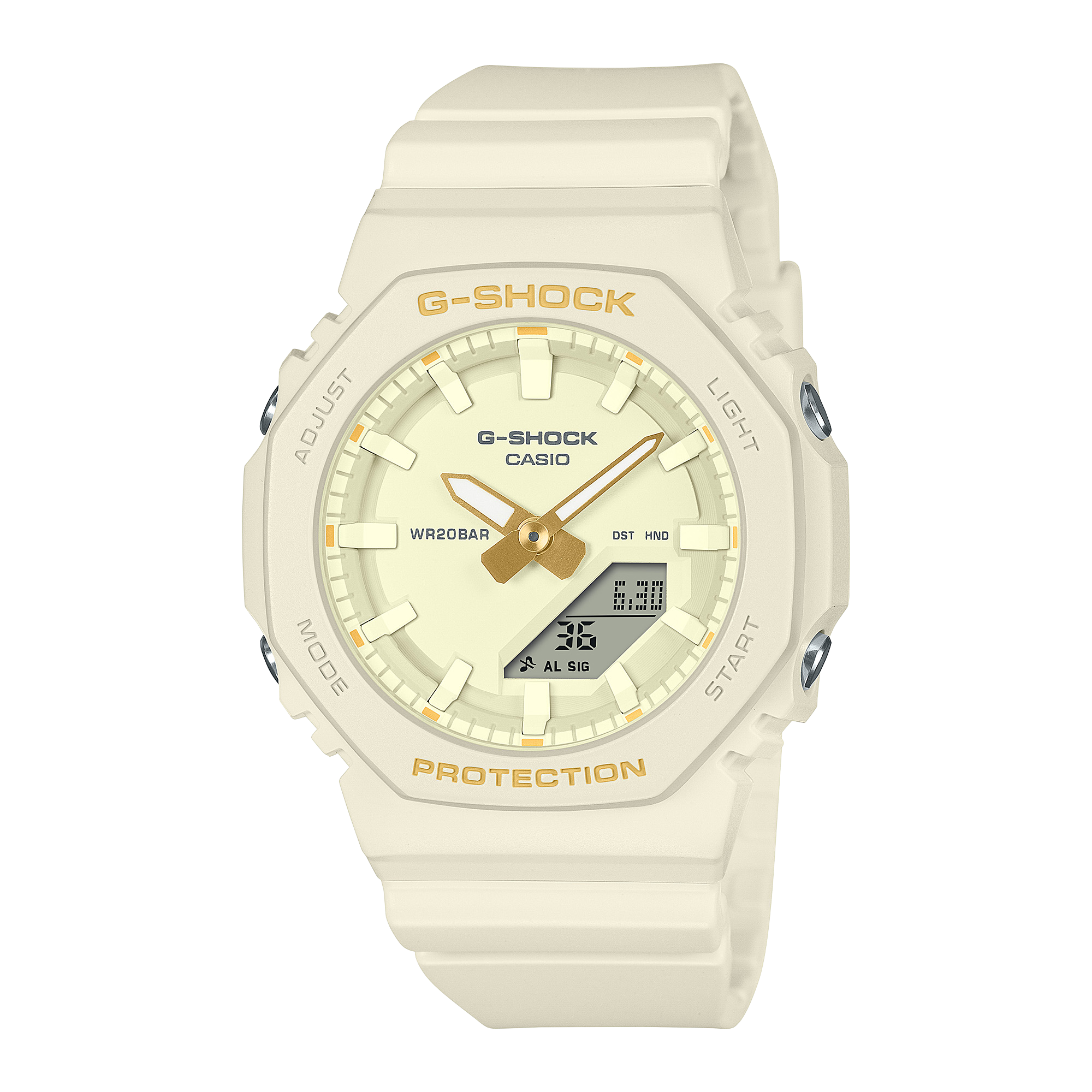 Minimalista, resistente y versátil. El GMA-P2100W-7A ofrece un diseño monocromático en tono blanco que combina fácilmente con cualquier estilo. Su tamaño compacto y ligereza lo hacen perfecto para el uso diario, manteniendo la protección y durabilidad de G-SHOCK.